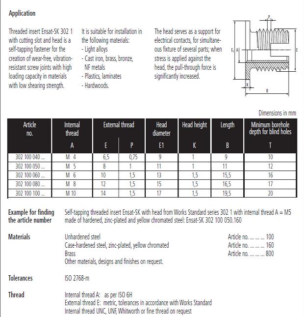 302-1型自攻鞍山丝套是一种新型的紧固件,使用后能够加强螺纹强度。产品有内外牙,将其嵌入塑料,铝合金,铸铁,铜等较软材料内,形成的内螺纹孔就可以具有较高的强度。