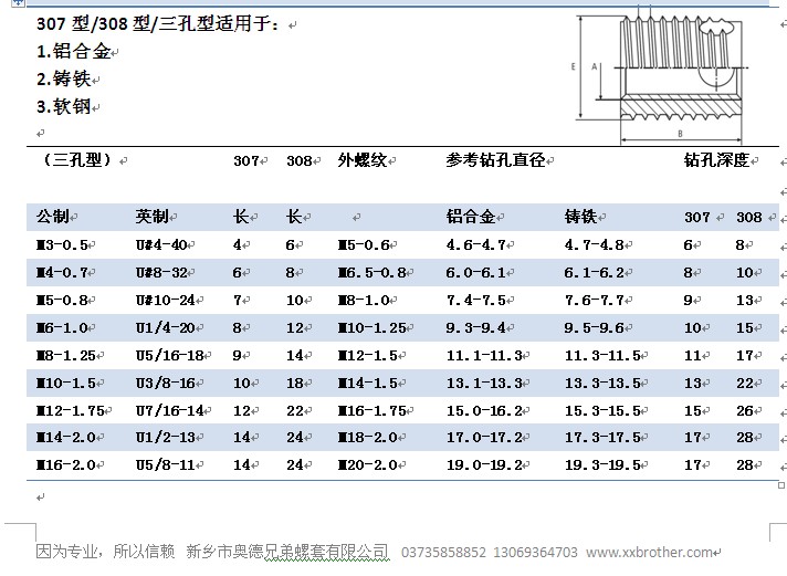 鞍山308型自攻丝套使用影响机器行业当中的作用:鞍山螺纹护套被认为一种紧固件产品,大概在几年前,当有人提到308型自攻鞍山丝套的时候会不清楚,然而,随着时间的推移,螺纹护套产品的选择不断增加,衬套的重要性,在行业当中的使用也随之的被各位熟悉。